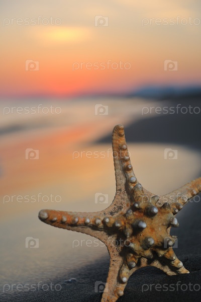 Летний закат с звездой на пляже