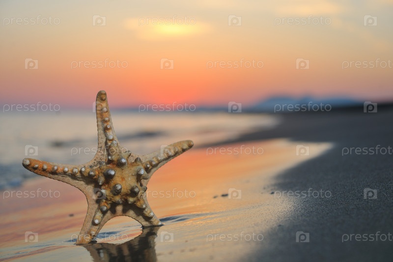 Летний закат с звездой на пляже