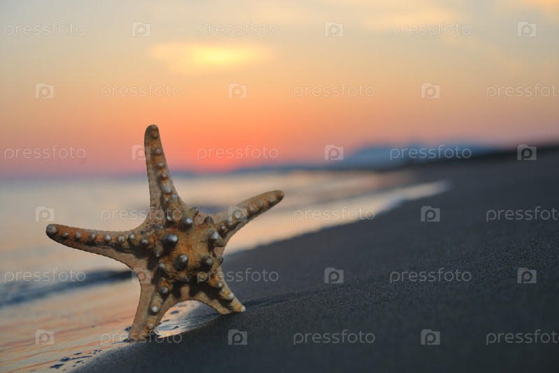 Летний закат с звездой на пляже