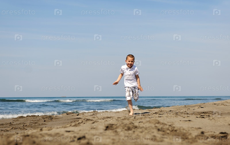 Маленький мальчик, бегущий на пляже