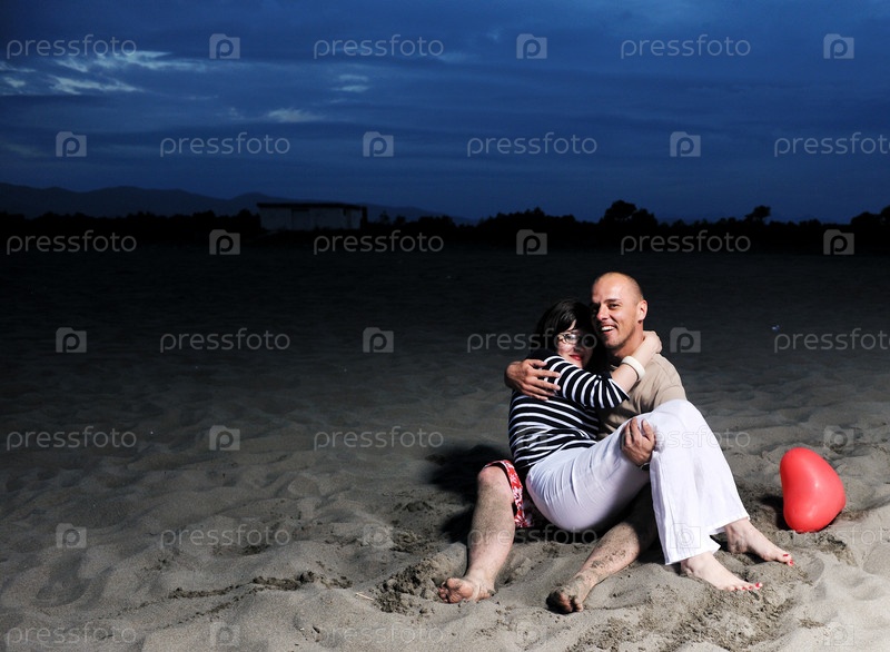 Счастливая молодая пара развлекается на пляже