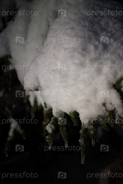 Дерево, покрытое свежим снегом в зимнюю ночь