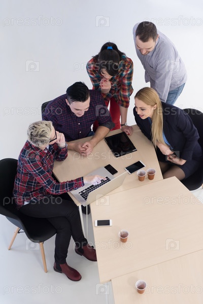 Вид с воздуха группы деловых людей на встрече