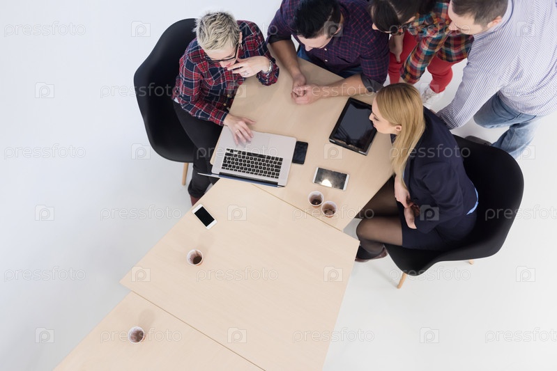 Вид с воздуха группы деловых людей на встрече