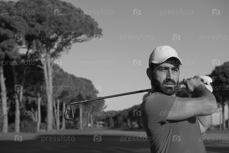 Игрок в гольф, бьющий выстрел