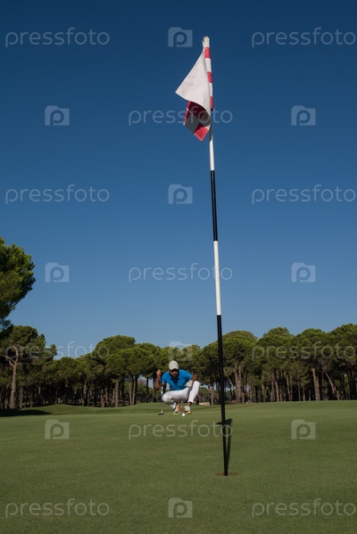 Игрок в гольф, стремящийся к идеальному выстрелу