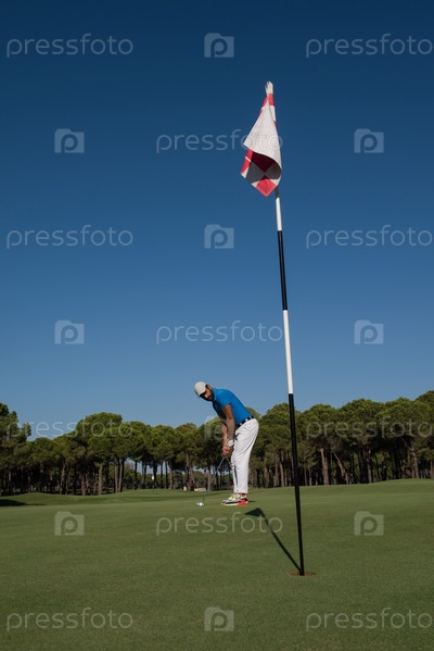 Игрок в гольф, бьющий выстрел в солнечный день