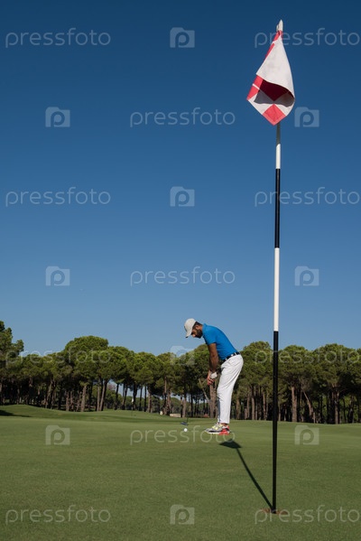 Игрок в гольф, бьющий выстрел в солнечный день