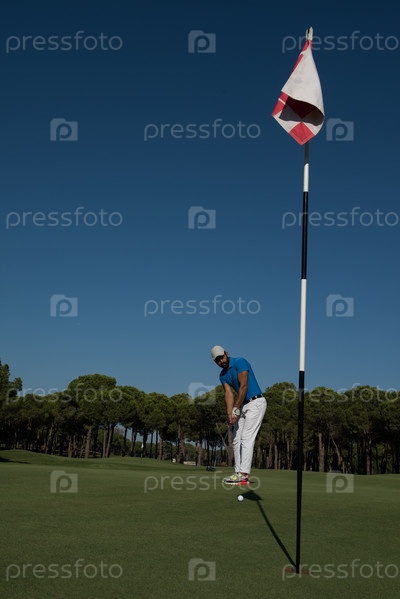 Игрок в гольф, бьющий выстрел в солнечный день
