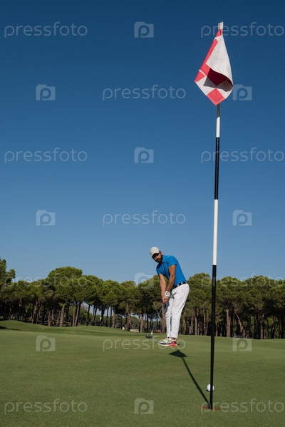 Игрок в гольф, бьющий выстрел в солнечный день