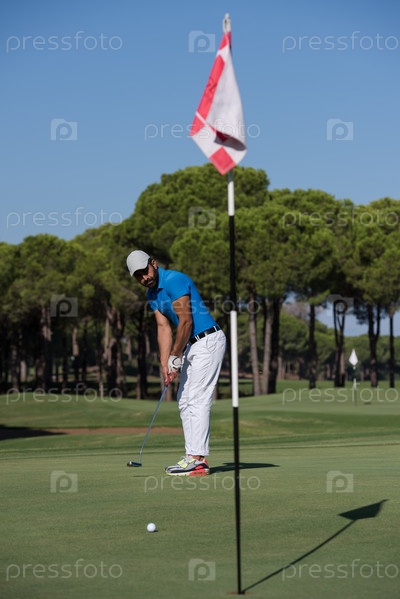 Игрок в гольф, бьющий выстрел в солнечный день