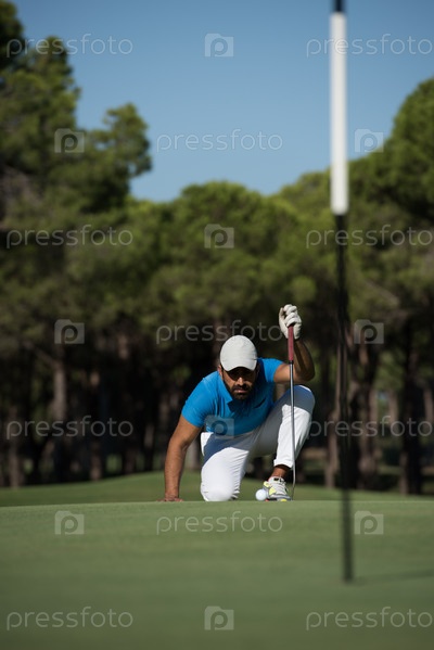 Игрок в гольф, стремящийся к идеальному выстрелу