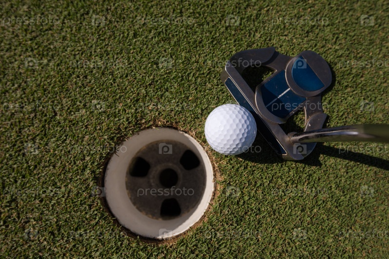 Удар по мячу для гольфа в отверстие