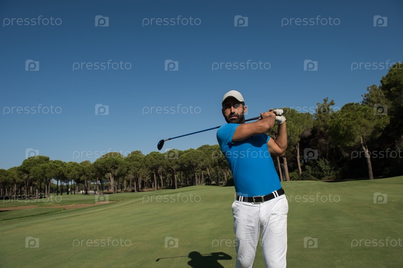 Игрок в гольф, бьющий выстрел