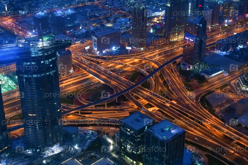 Транспортная развязка в ночное время, Дубай, ОАЭ