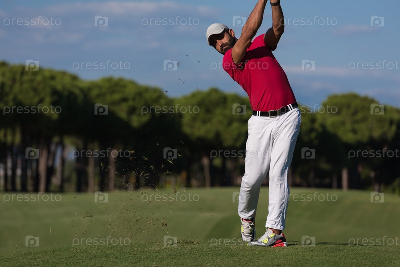 Игрок в гольф, бьющий длинный выстрел