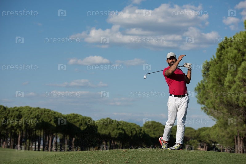 Игрок в гольф, бьющий длинный выстрел