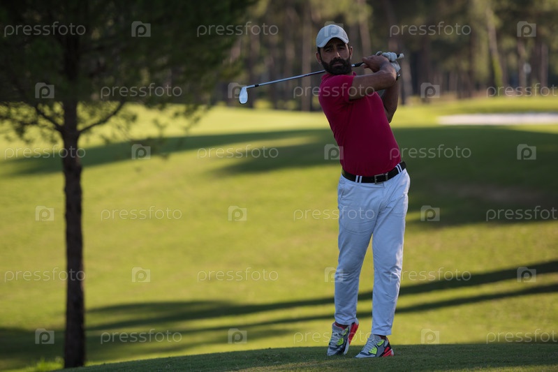 Игрок в гольф, бьющий длинный выстрел