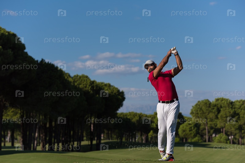Игрок в гольф, бьющий длинный выстрел