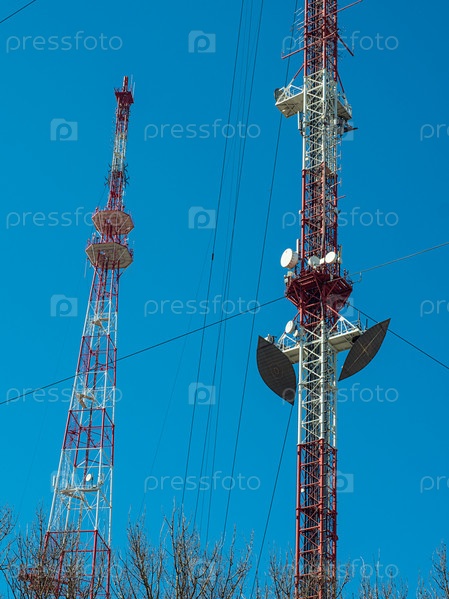 ТВ и радио башня с несколькими антеннами и оборудованием сотовой связи