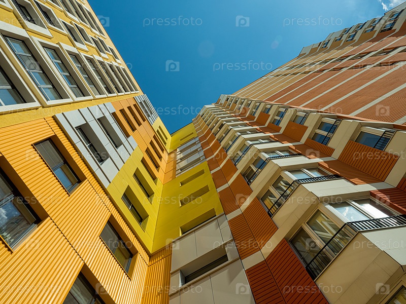 Фасад современного жилого дома в Москве, Россия