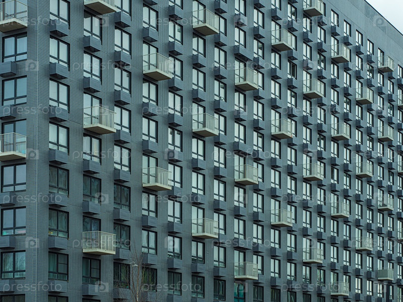 Современный новый дом с красивым ярким фасадом. Москва, Россия