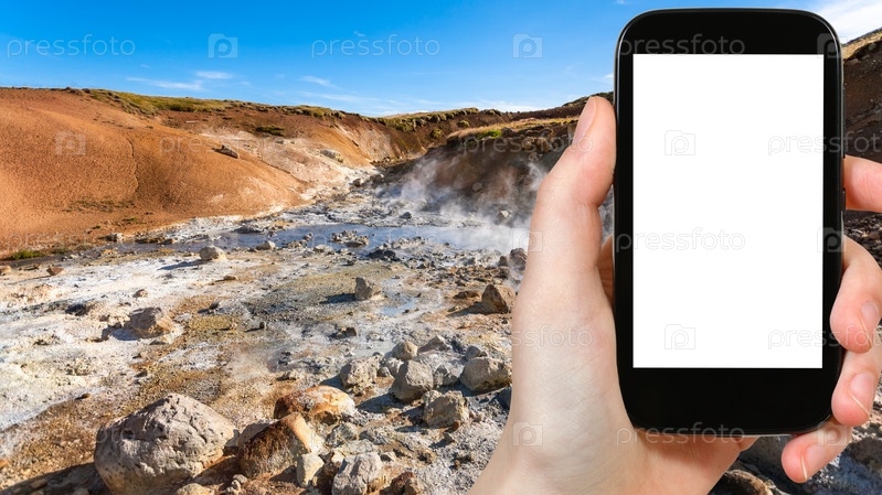 Турист фотографирует кислотные источники в Крисювике