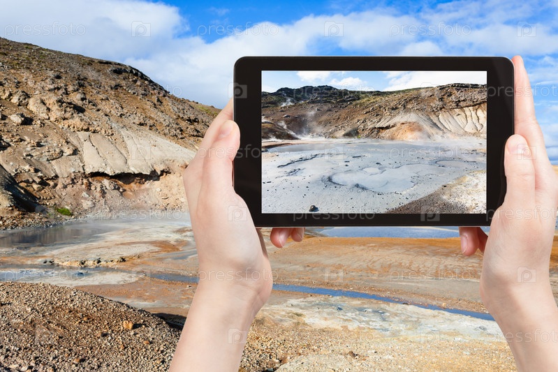 Туристические фотографии кратера в Исландии