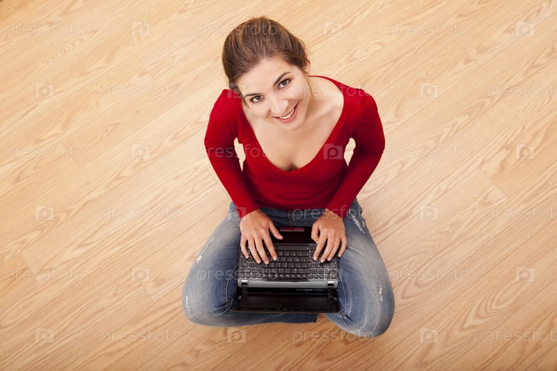 Женщина, работающая с ноутбуком