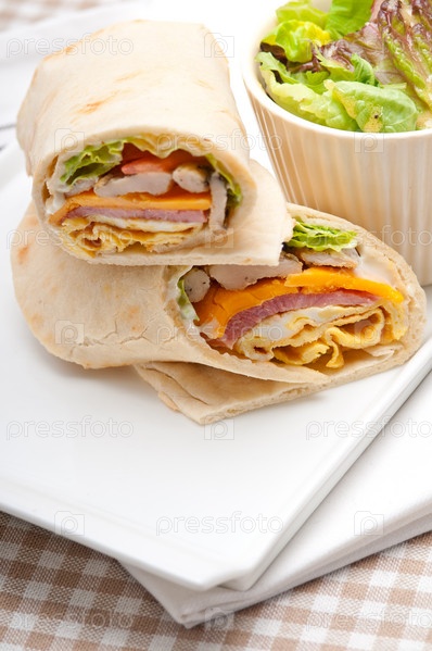 Клубный сэндвич - ролл из хлеба пита