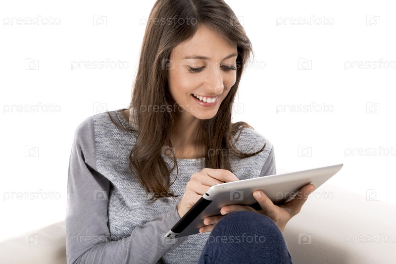 Женщина, работающая с планшетом
