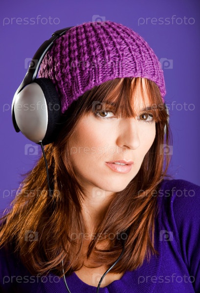 Красивая женщина, слушающая музыку