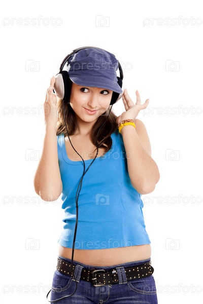 Молодая девушка слушает музыку
