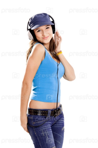 Молодая девушка слушает музыку