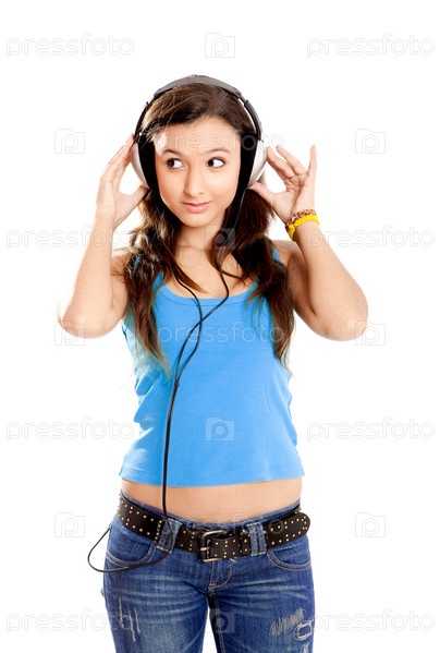 Молодая девушка слушает музыку