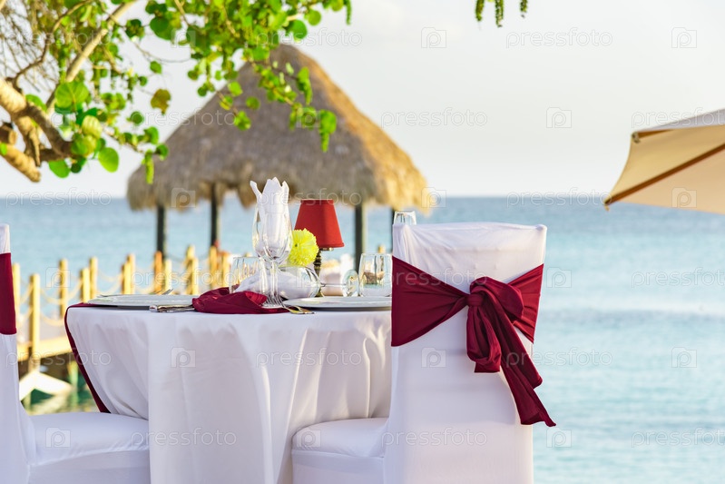 Праздничный стол в беседке на закате Карибское море Доминиканский