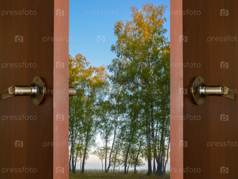 Открытые двери и зимний лес