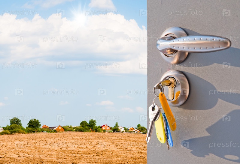 Открытая дверь с видом на зеленый луг яркий солнечный свет