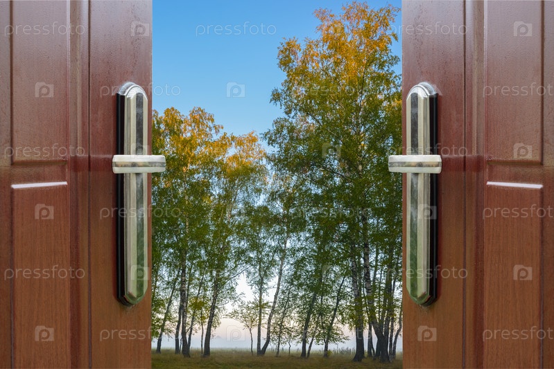 Открытые двери и зимний лес