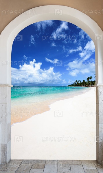 Деревянный открытый дверной арки выход на пляж Карибский бассейн Доминиканская Республика