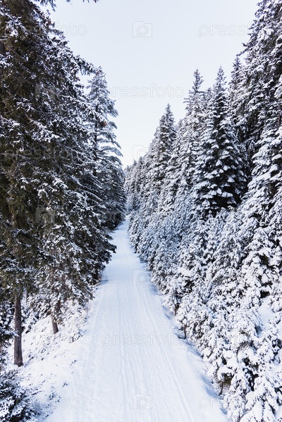 Дорога в хвойных лесах