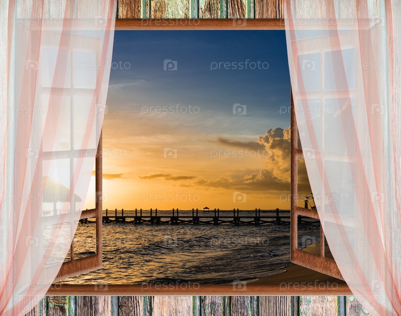 Вид из открытого окна на карибский закат