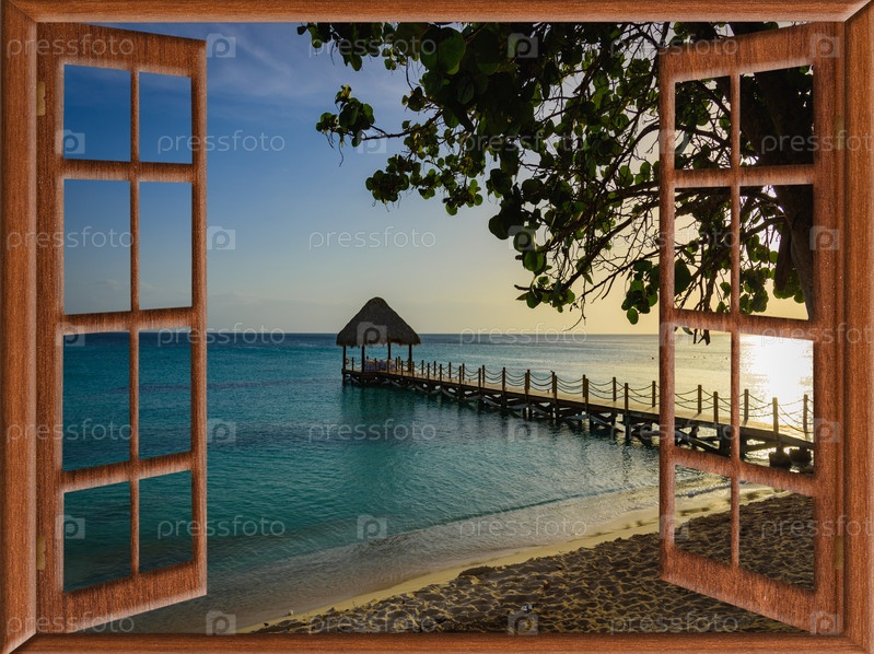 Вид из открытого окна на карибский закат