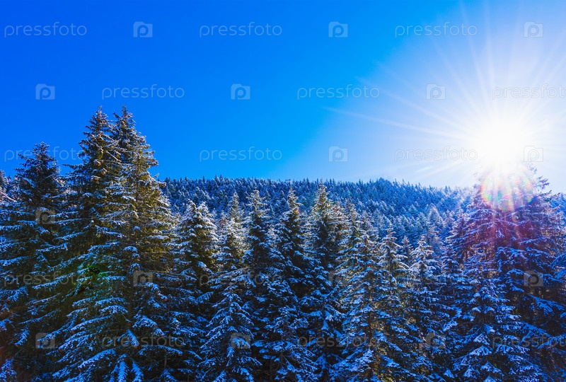 Зимний пейзаж горный лес снег
