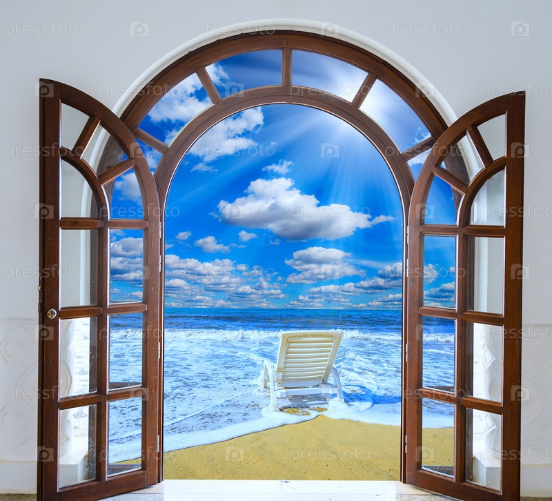 Дверная арка с морем открытый летний день