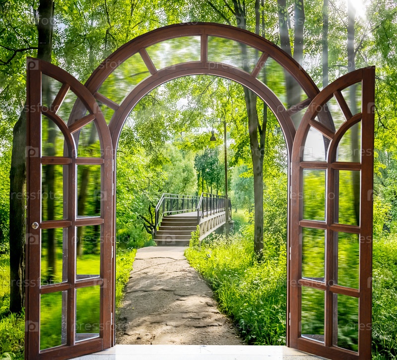 Открытые двери и зимний лес
