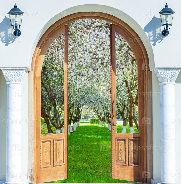 Дверные ворота весенней арки сада