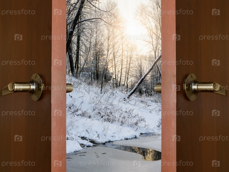 Открытые двери и зимний лес
