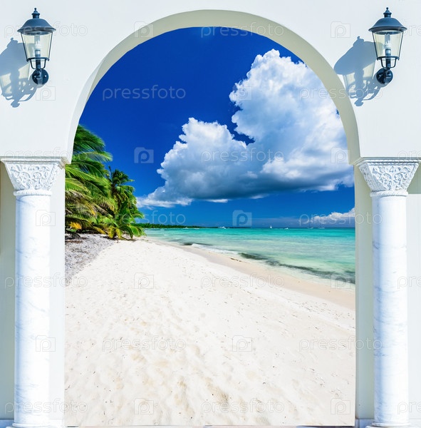 Деревянный открытый дверной арки выход на пляж Карибский бассейн Доминиканская Республика