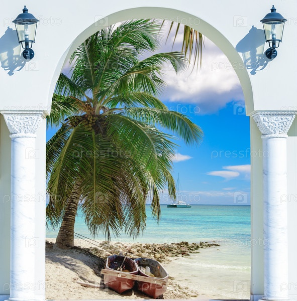 Деревянный открытый дверной арки выход на пляж Карибский бассейн Доминиканская Республика